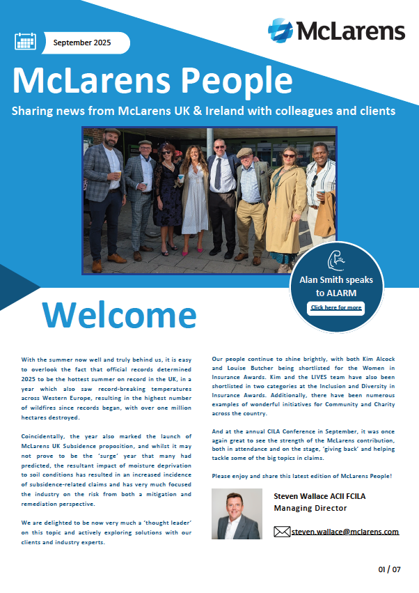 Our September 2025 addition of McLarens People Newsletter, sharing news from McLarens UK & Ireland with colleagues and clients.