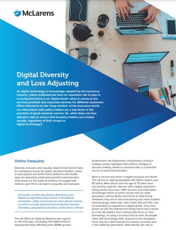 To help keep you connected to the latest developments in insurance and claims, we are sharing our latest thought piece on Digital Diversity and Loss Adjusting by Kim Alcock, Head of UK Casualty & TPA Operation.